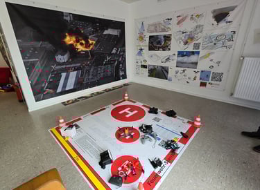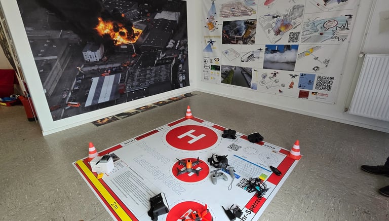 Einsatz von KI-gesteuerten Drohnen und Robotern zur Unterstützung bei Einsätzen und zur Verbesserung der Situationsanalyse. Insbesondere Indoor. Auf dem Foto ist der Taktik-Bereich der Drohnenwelt zu sehen. In der Drohnenwelt fand kürzlich auch die UAV-Tactica (Intern. Drohnenkonferenz) statt.