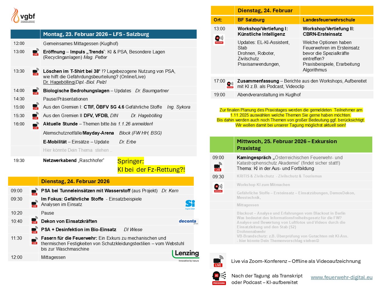 • Option: Gruppenanmeldung (gleiche Feuerwehr/Organisation) ab 5 Teilnehmern: 200,– EUR pro Person